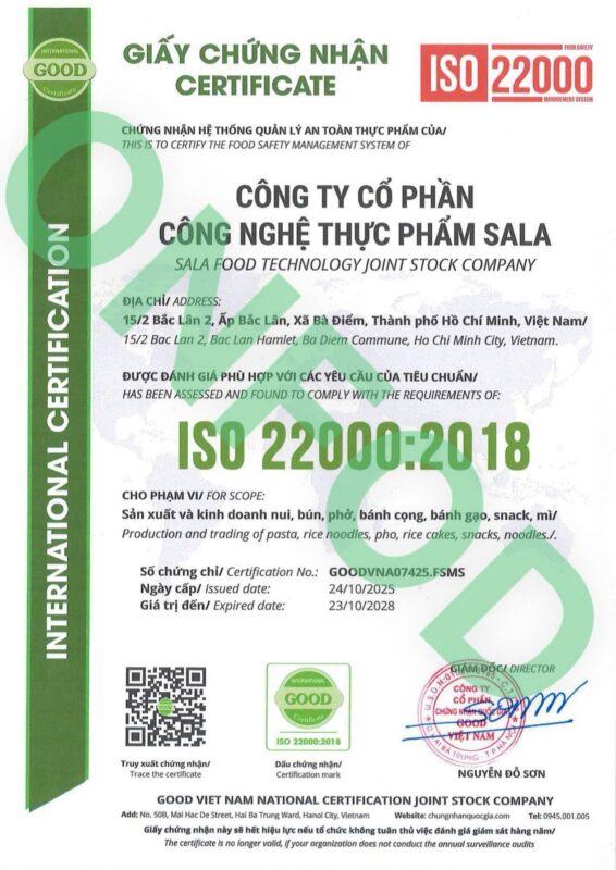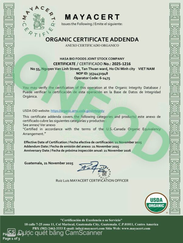 Trong quá trình sản xuất, tất cả các công đoạn đều được kiểm soát chặt chẽ từ nguồn nguyên liệu đầu vào đến khâu sản xuất chế biến, tuyệt đối không sử dụng hóa chất độc hại, chất bảo quản hay chất tạo màu & mùi vị, hướng đến sản phẩm đạt chuẩn quốc tế.