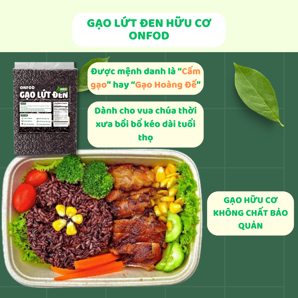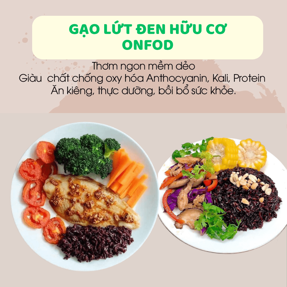 Gạo lứt đen dẻo hữu cơ điện biên, gạo lứt tím than ONFOD dành cho người giảm cân, ăn kiêng, tiểu đường